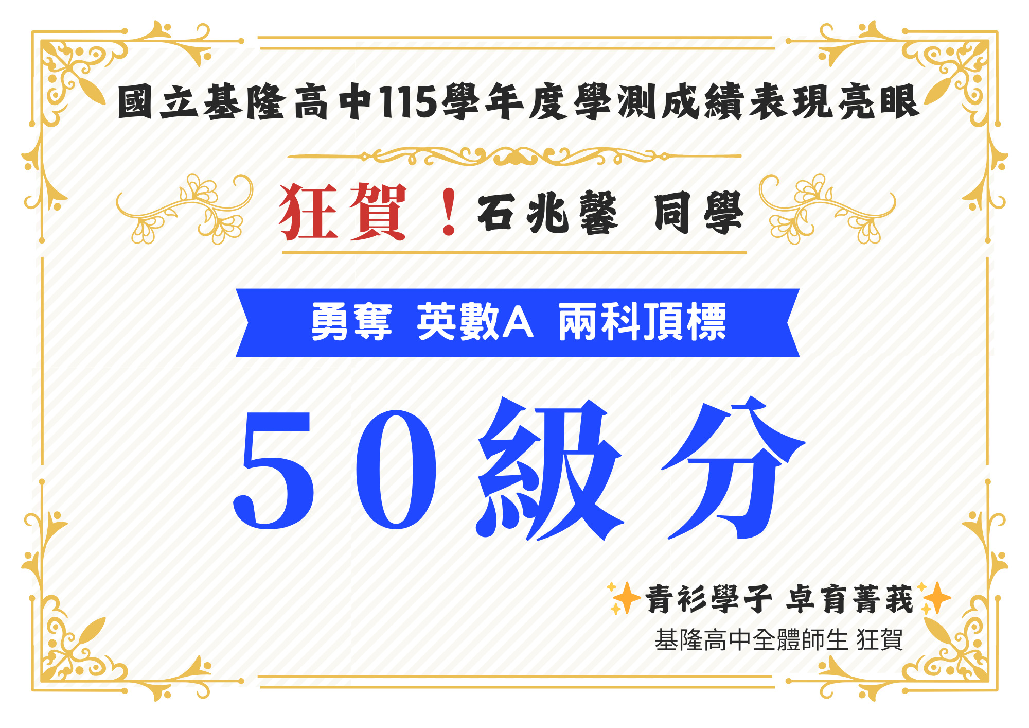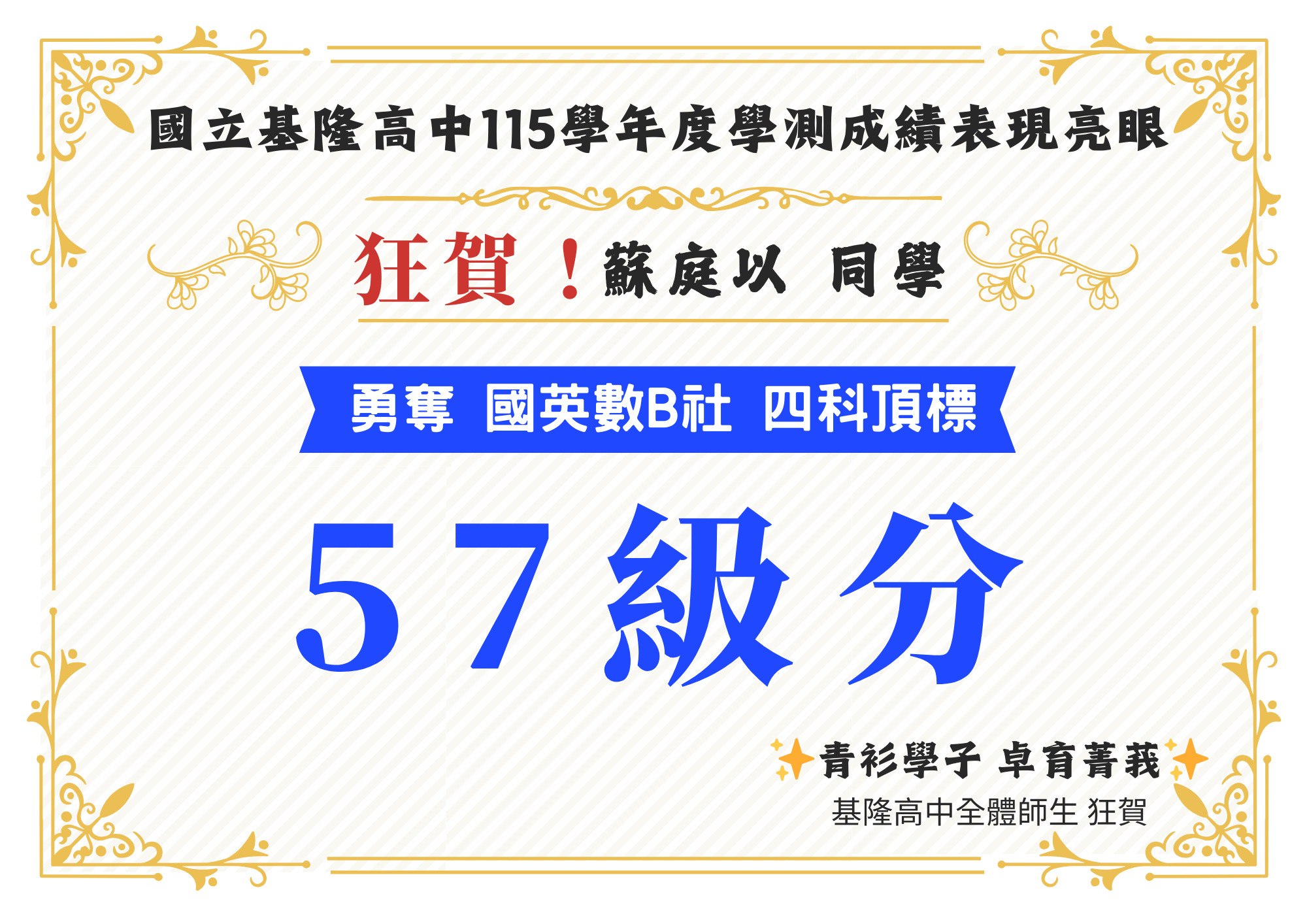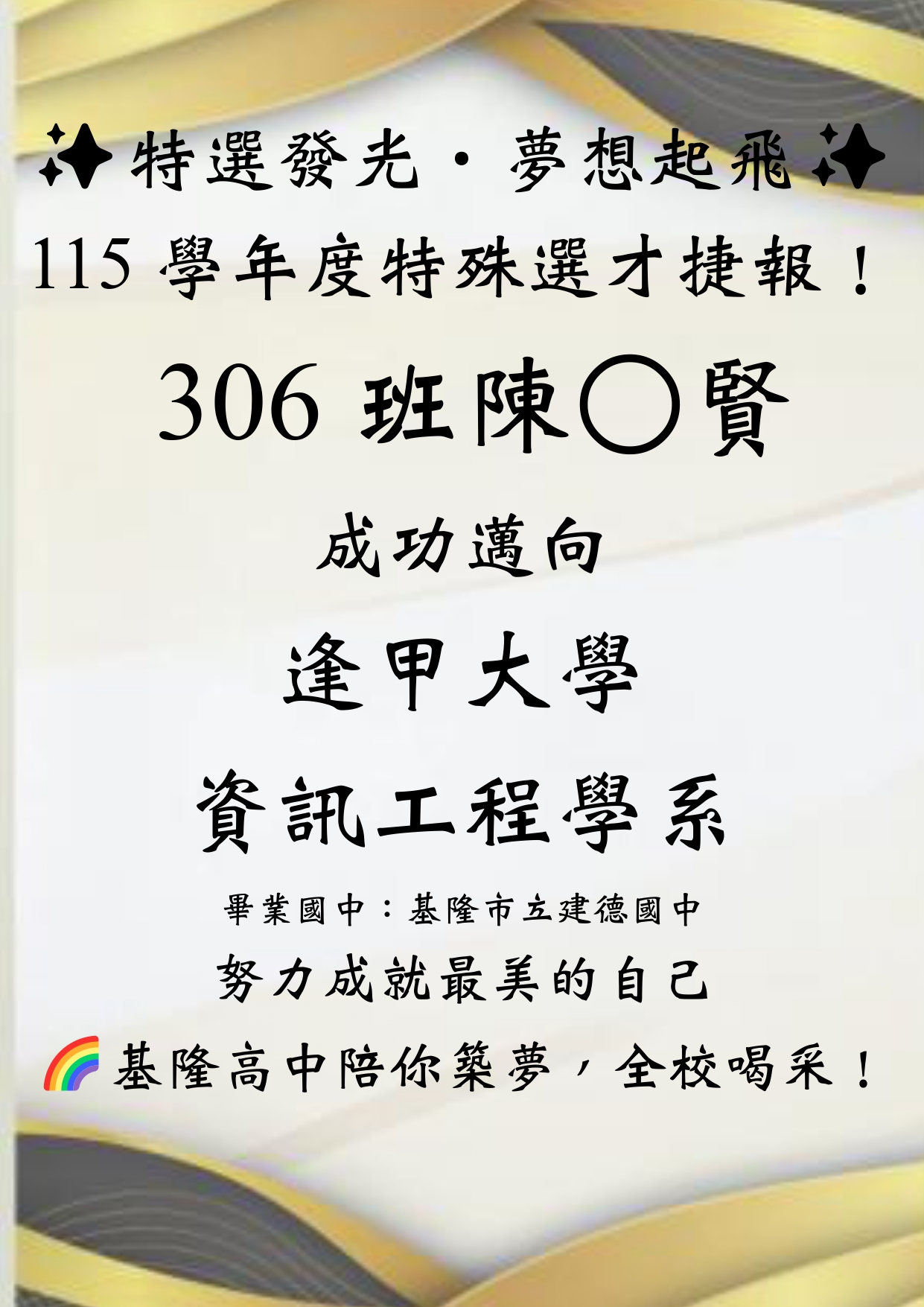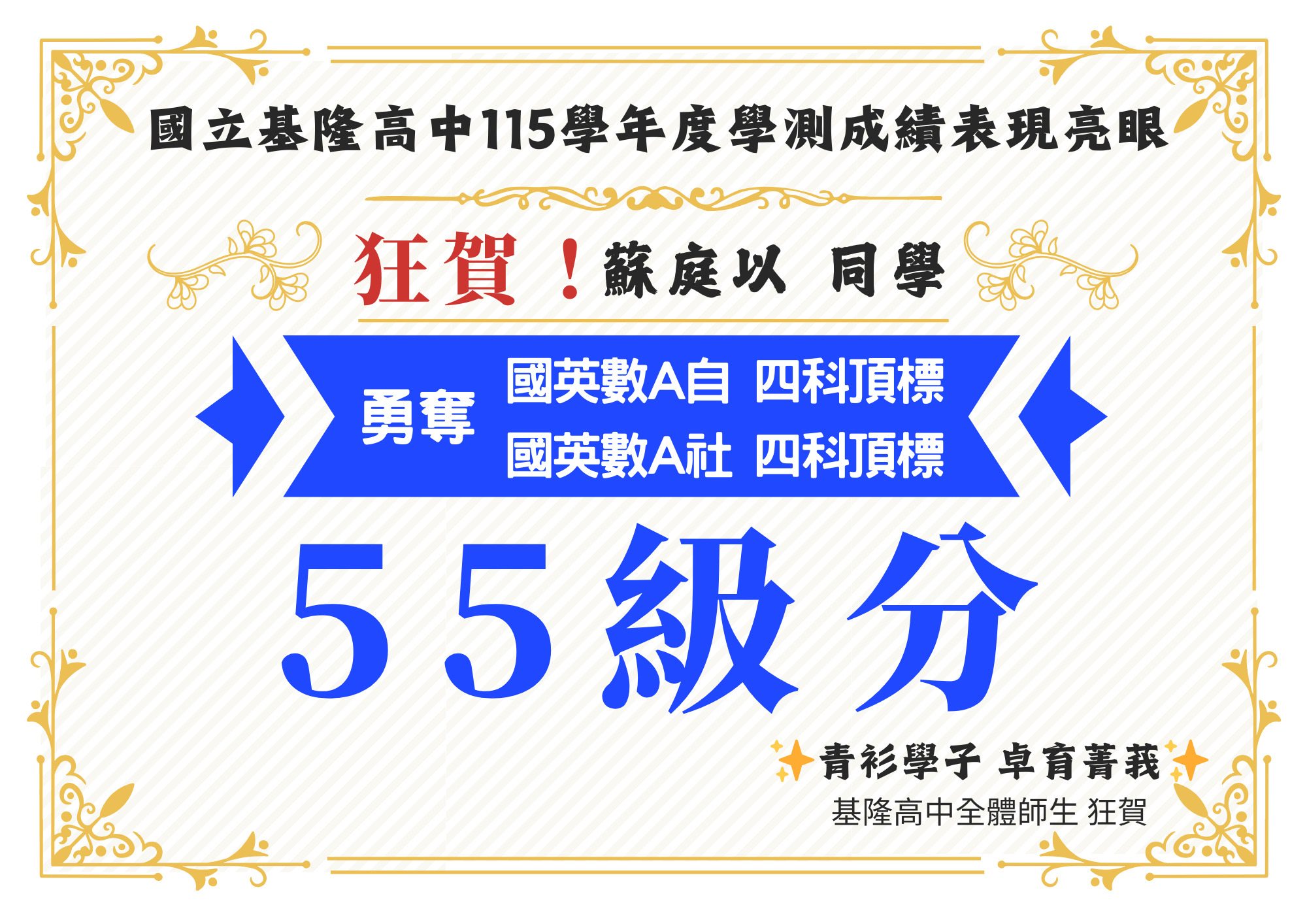 - [繁星捷報] 🌟台清交成政 全員達陣 ✦ 升學實力 傲視基隆 🌟