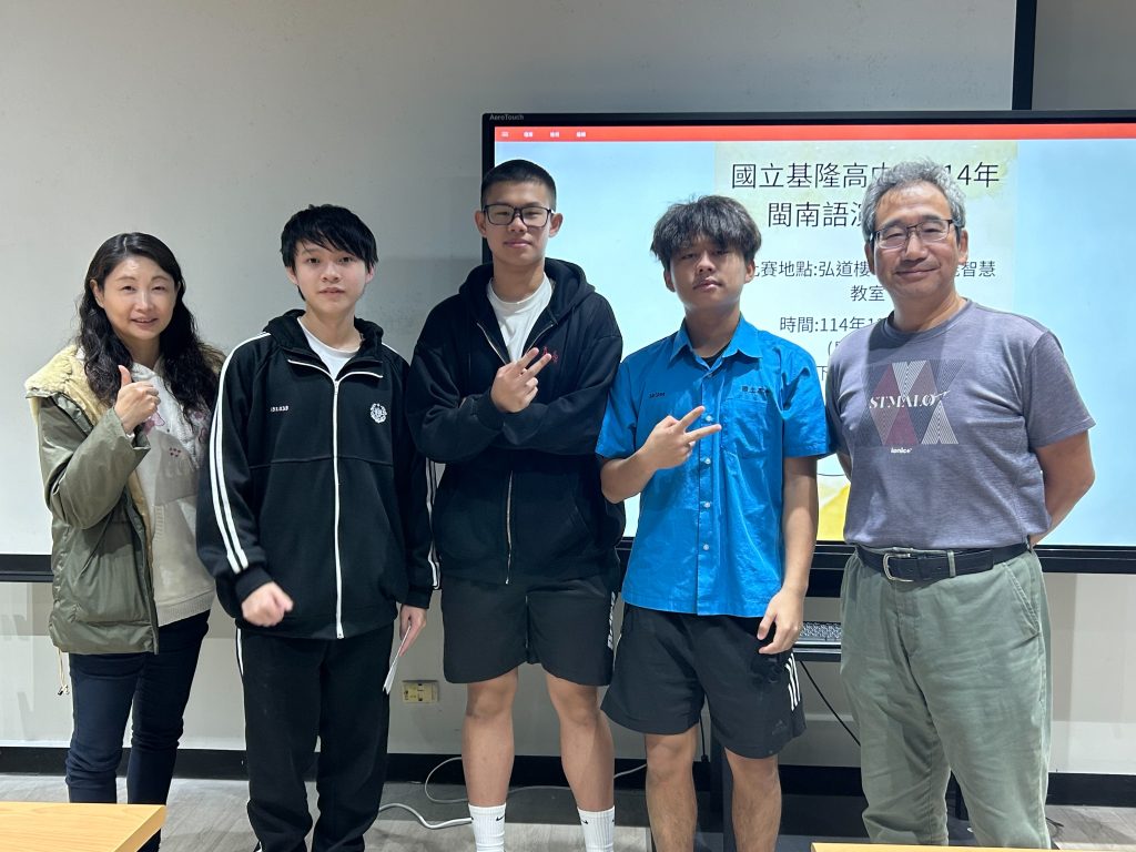 [得獎榮譽]114學年度國語文閩南語演說比賽成績揭曉Post author:教學組長Post published:2025-12-18Post category:得獎榮譽 / 教學組 / 最新公告 / 活動訊息 / 重要公告 / 首頁公告恭喜以下同學表現優異: 第一名 208 許O曄 指導老師:呂瑞萍老師第二名 207 張O謙 指導老師:何志鵬老師第三名 110 蕭O鈞 指導老師:陳秀娥老師恭喜以上獲獎同學,感謝老師的辛勤指導 Post Views: 24相關內容[各項競賽]第15屆全國法規資料庫競賽活動2023-06-05[教師甄選]國立基隆高級中學114學年第1次專任教師甄選,請至本校教師甄選系統下載簡章及報名。2025-05-23[政令宣導]行政院訂定「行政院與所屬中央及地方各機關(構)學校防範公務員以專業證照違法兼職或租借他人處理原則」,並自112年11月29日生效;同日停止適用「防範公務員以專業證照違法兼職或租借他人實施計畫」,請查照。2023-12-13