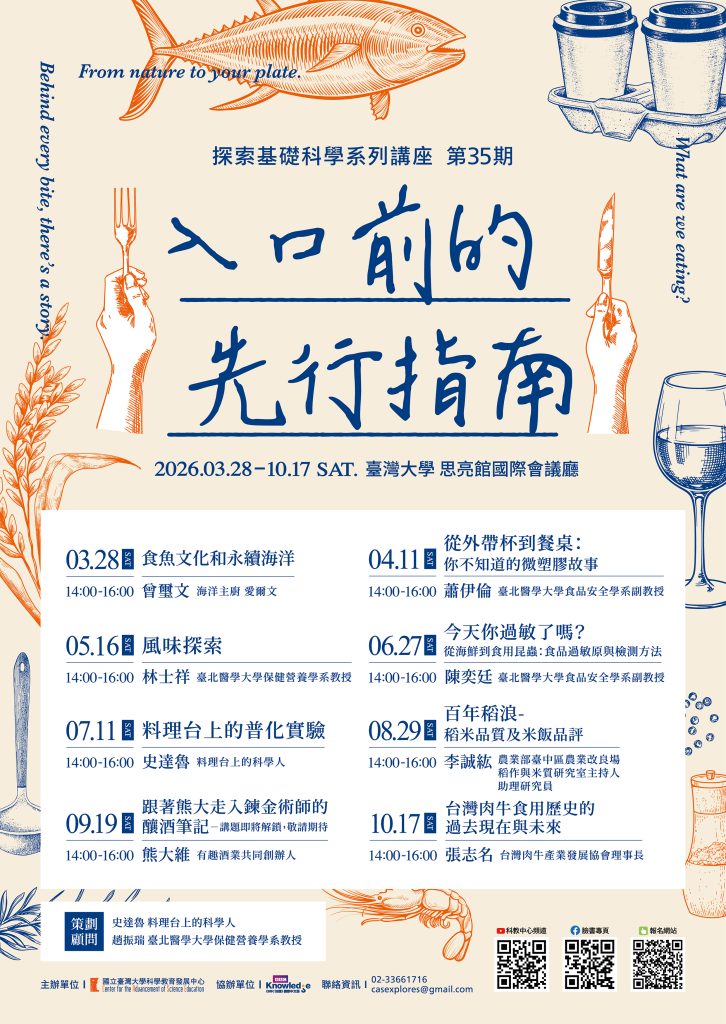 探索基礎科學系列講座Post author:設備組Post published:2026-03-23Post category:學生活動 / 首頁公告115年3月28日至115年10月17日舉辦本系列講座於本校思亮館國際會議廳辦理,免費參加。參與講座請事先報名https://www.accupass.com/organizer/detail/1911260714385254030800。 Post Views: 14相關內容[訊息轉知]大同大學《大同學報》徵稿,敬請轉知貴校師生及研究同仁踴躍投稿惠賜論文2023-09-04[活動轉知]大仁科技大學藥學系辦理「2023大仁藥學營-約定的蓬萊島」活動2023-05-24[學生競賽]國立雲林科技大學本校辦理之「2023年雲創盃智慧生活創新應用競賽」,報名截止日延期至112年10月26日(星期四)中午12時,請有興趣的同學踴躍報名2023-10-03